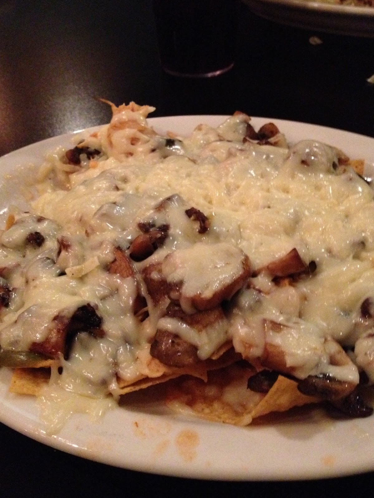 I ordered the Chilaquiles, which are "Nachos stuffed with nacho cheese, chicken and grilled mushrooms. Served with Spanish rice and guacamole salad." This dish isn't as unhealthy as it sounds, the corn tortilla chips are only on the bottom with plenty of chicken and grilled mushrooms on top. There wasn't a ton of cheese (but still enough to have the melty factor!) and I only ate about half (with the hub's help).